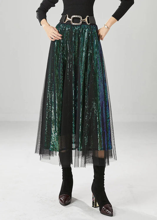 Pfauengrüner, schlichter A-Linien-Tüllrock mit Pailletten für den Herbst ML0473