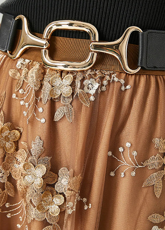 Damen Braune bestickte Tüllröcke mit elastischer Taille Herbst ML0470