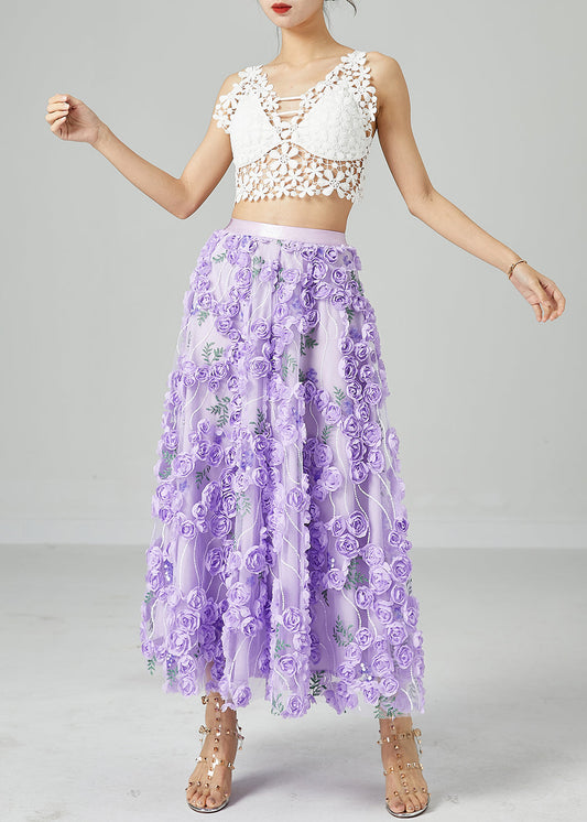Schöne hellviolette bestickte Tüllröcke mit Blumenmuster für den Sommer LY2431