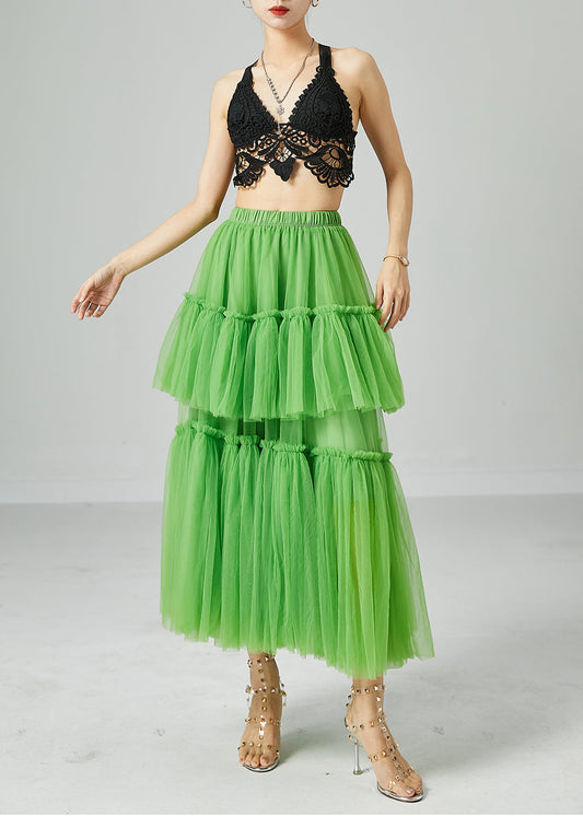 Boho Grün Elastische Taille Patchwork Faltig Tüll Röcke Sommer LY2433