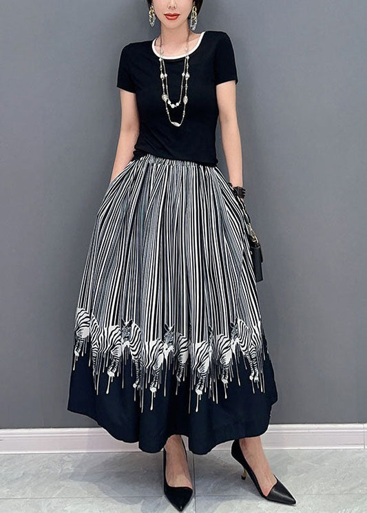 Lässiger schwarzer übergroßer Baumwollrock mit Zebramuster, Frühling LY1593