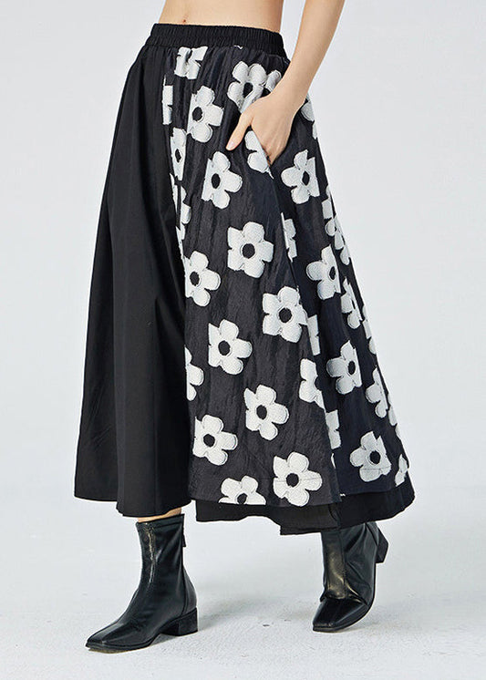 Einzigartige schwarze Faltentaschen Patchwork Baumwollröcke Sommer LY1220