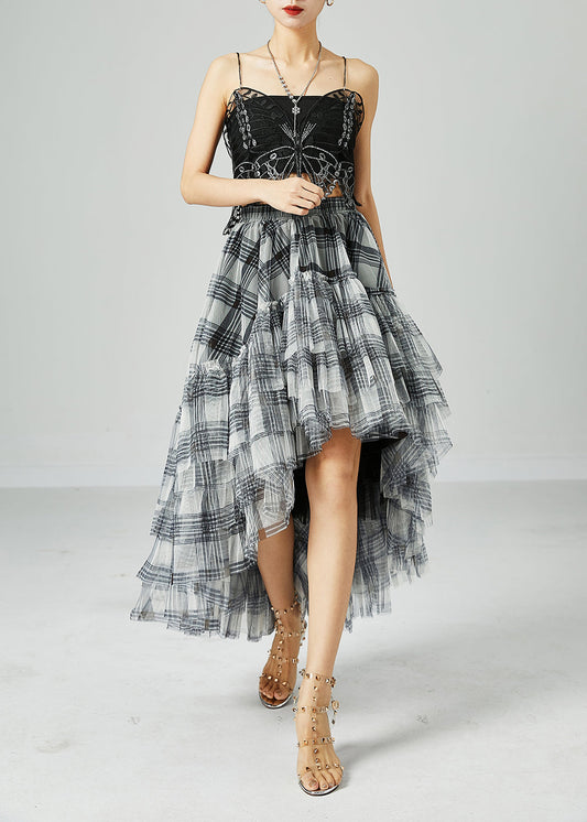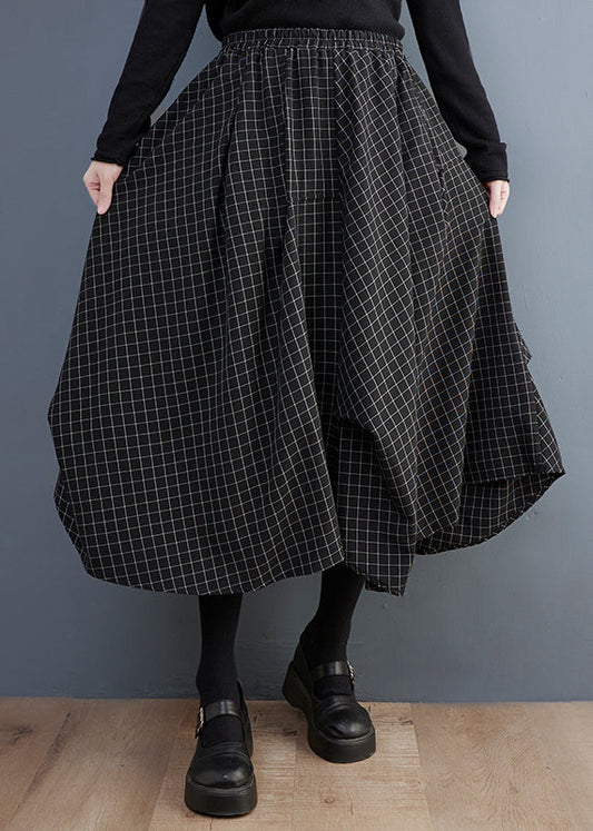 Taillierter schwarzer, asymmetrischer karierter Baumwollrock für den Sommer LY2394