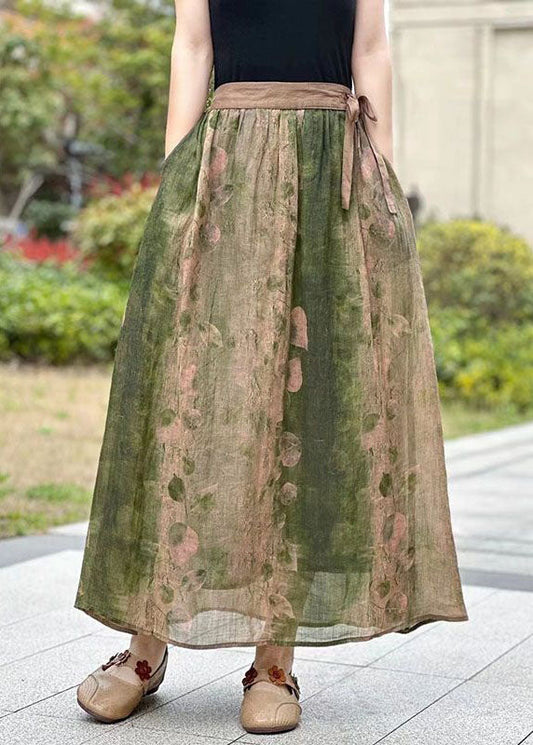 Grüne Taschen Print Patchwork Leinen Röcke Schnürung Sommer LY2565