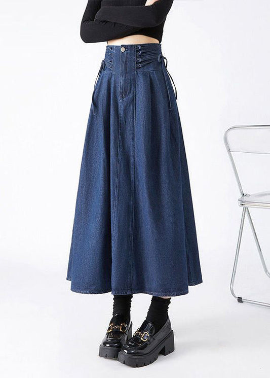Maxi Frühling Röcke Navy Mode Patchwork Krawatte Taille Denim