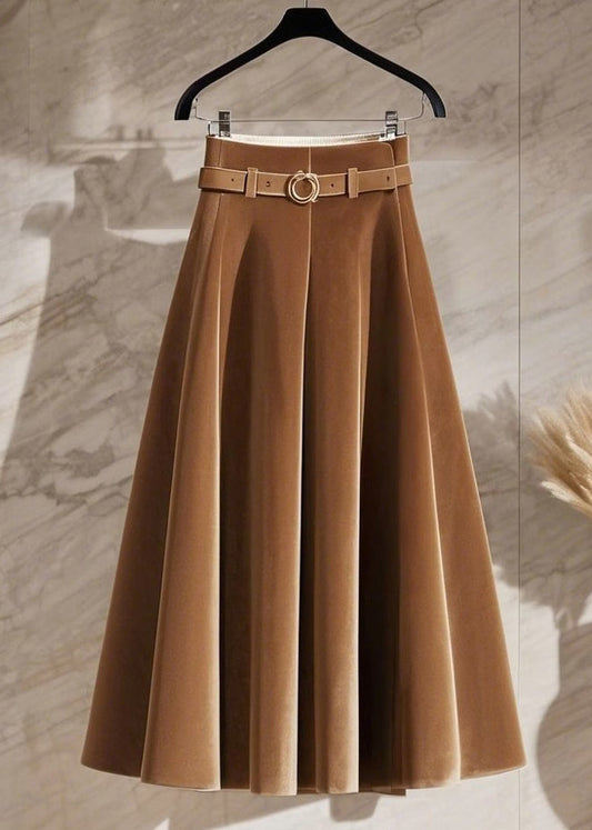 Neue Kaffee Hohe Taille Feste Seide Samt Röcke Frühling YW001