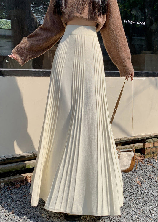 Art Weiß Hohe Taille Falten Strick Urlaub Röcke Frühling YP041