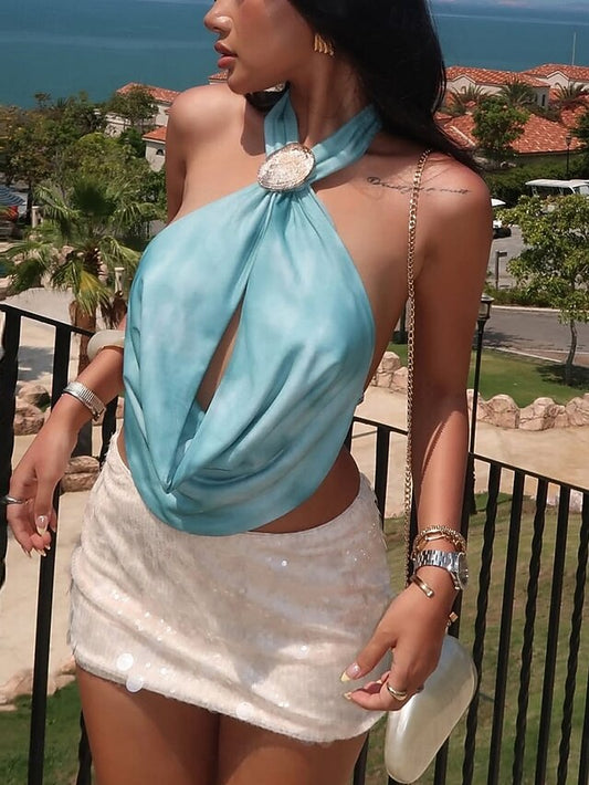 Women's Halter Neck Top Blouse Sleeveless Shirt Backless