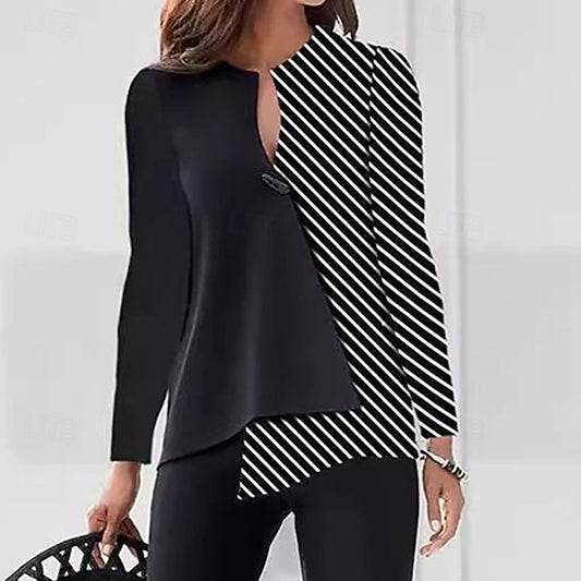 Women's Pants Sets Bolero Top Long Sleeve V Neck Striped
