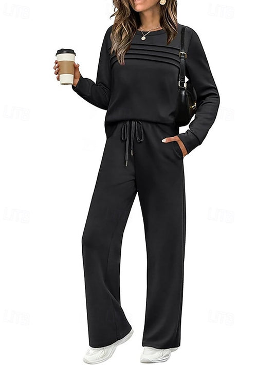 Women's Pants Sets Bolero Top Long Sleeve Round Neck Plain
