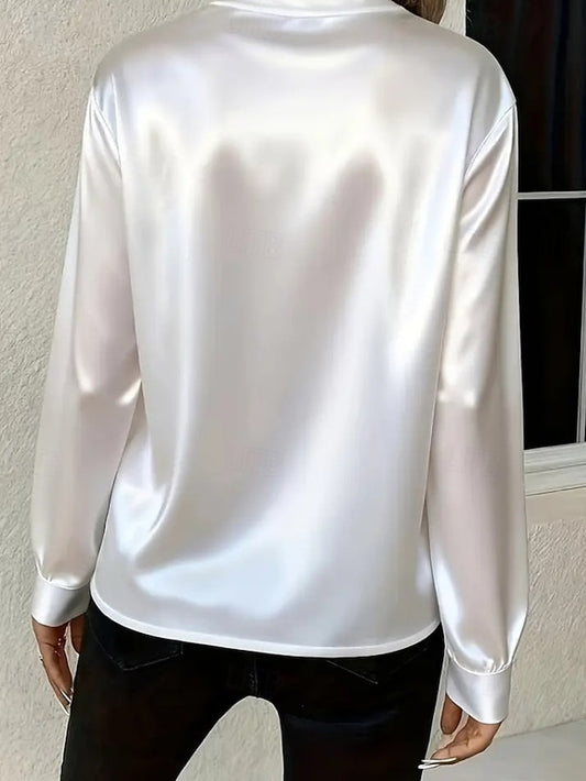 Women's Shirt Elegant Satin Top Blouse Plain Stylish Long