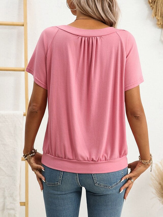 Women's T Shirt Tee Top Buttons Plain Elegant Fashion