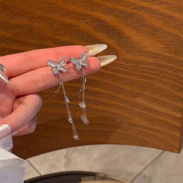 Butterfly Cat Alloy Eye Earring Stone Dangle Faux