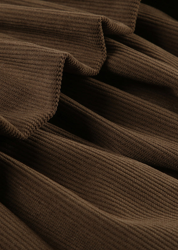 Frauen Braun Reißverschluss Spitze Hohe Taille Cord Röcke Sommer