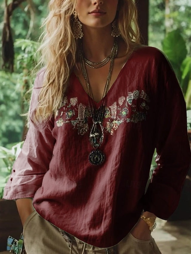 Women's Boho Blouse Floral Graphic Paisley Bohemia Vintage