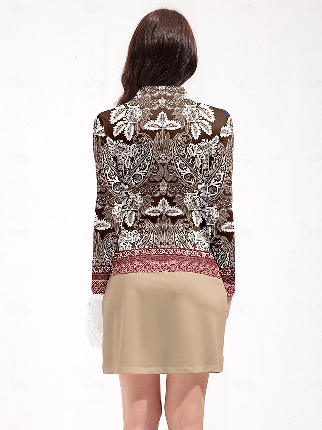 Women's Golf Polo Shirt Brown Long Sleeve Top Ladies Golf