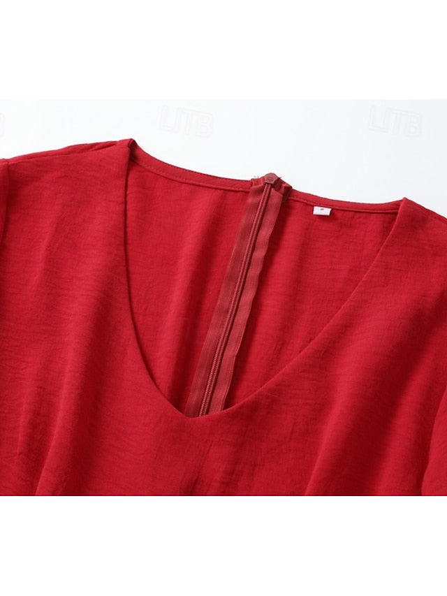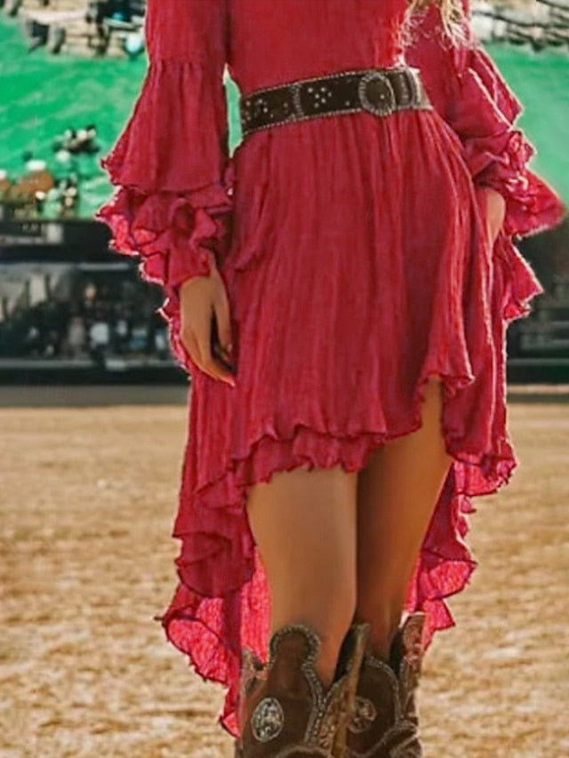 Accessories not included: Accessories not included, Dresses Type: Western Dress, Boho Dress, Fabric: Polyester, Gender: Women's, Design: Asymmetrical, Ruffle, Occasion: Outdoor, Holiday, Going out, Style: Classic, Modern, Fashion, Fit Type: Regular Fit, Dress Length Type: Mini Dress, Neckline: V Neck, Sleeve Length: Long Sleeve, Elasticity: Micro-elastic, Look After Me: Machine wash, Pattern: Plain, Season: Summer,