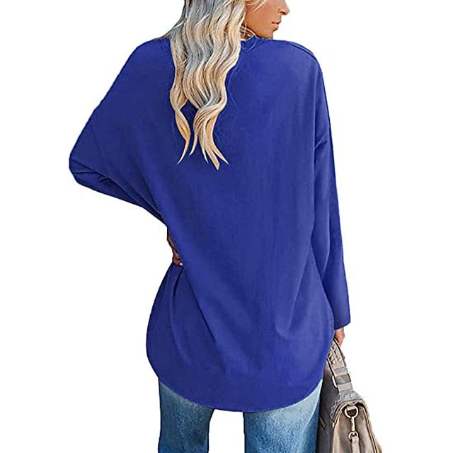 Women's T Shirt Plain Basic Long Sleeve V Neck Regular Tops