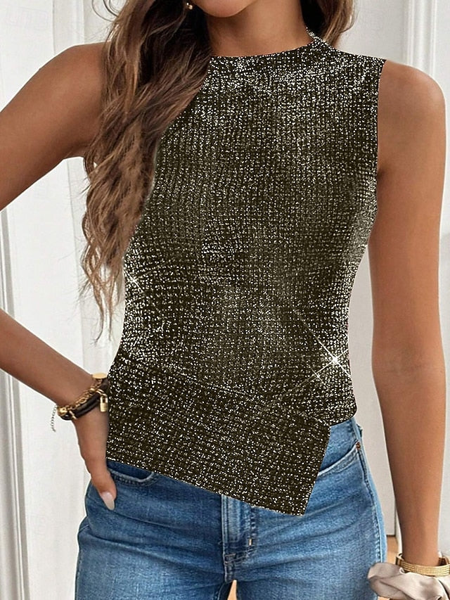 Fabric: Spandex, Polyester, Tops Type: Tee Top, T Shirt, Gender: Women's, Occasion: Daily, Going out, Weekend, Design: Patchwork, Style: Casual, Fashion, Fit Type: Regular Fit, Neckline: Crew Neck, Sleeve Length: Sleeveless, Elasticity: Micro-elastic, Look After Me: Machine wash, Top Length: Regular Tops, Pattern: Solid Color, Season: Summer,