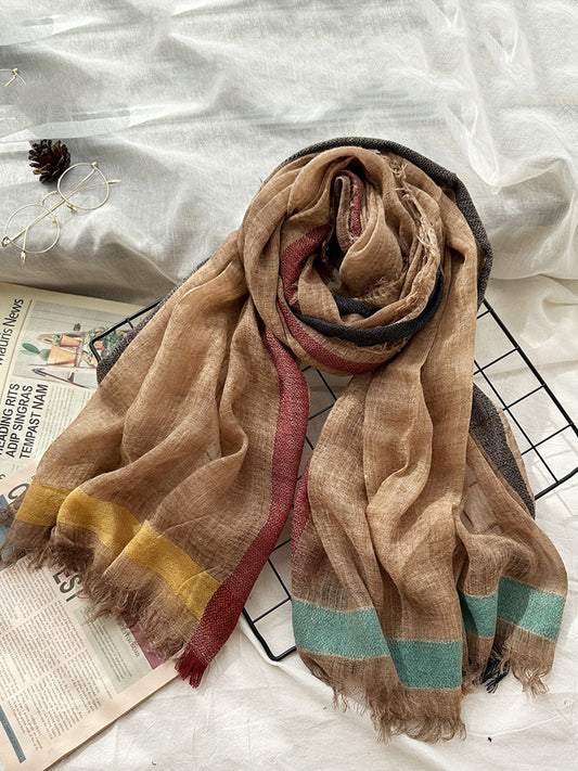 Écharpe châle vintage en laine colorblock d'été pour femme SC1008
