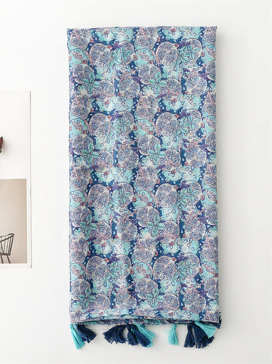 Écharpe châle à fleurs de grenade bleues pour femmes SC1014