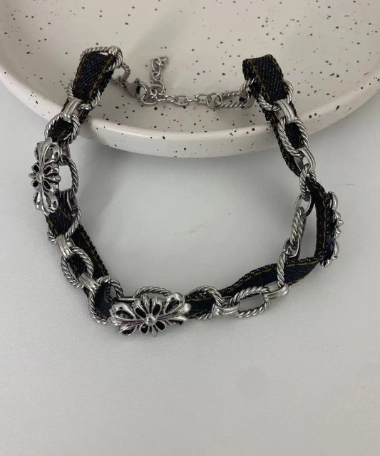 Collier patchwork en chaîne de calculs biliaires noirs de style bohème ML0673
