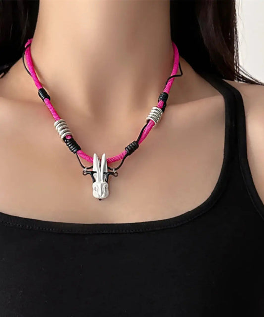 Collier pendentif petit lapin tricoté à la main en alliage rose simple ML0672