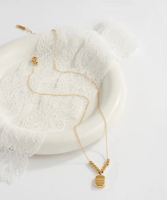 Collier Lariat carré unique en acier inoxydable doré ML0692