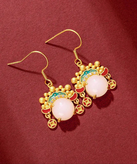 Boucles d'oreilles pendantes vintage en or jaune antique avec perles de zircone incrustées Dao Ma Dan pour masque facial LY8600