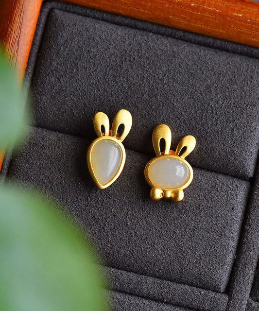 Boucles d'oreilles à tige en argent sterling cyan avec petit lapin en résine de jade surdoré LY8608