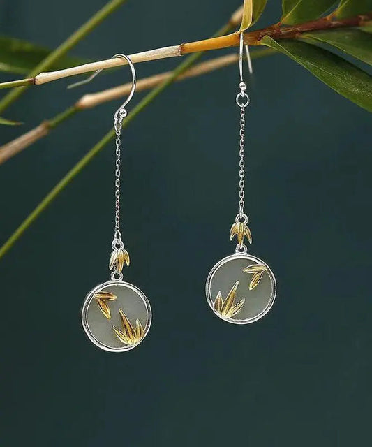 Boucles d'oreilles pendantes en bambou surdoré en argent sterling vert moderne LY8618