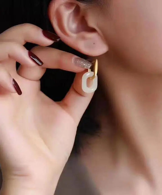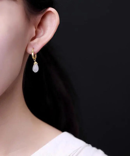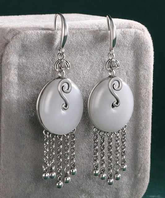 Boucles d'oreilles pendantes élégantes en argent sterling et jade blanc LY8551