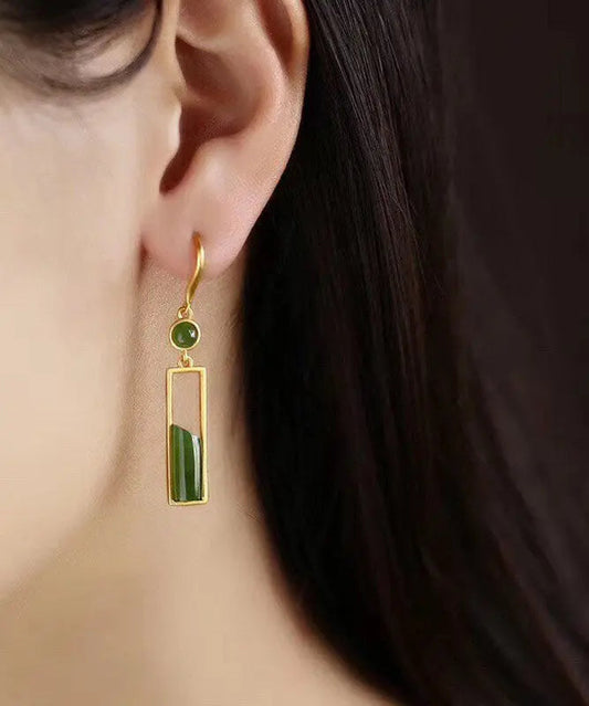 Boucles d'oreilles pendantes élégantes en argent sterling et pierres précieuses de jade vertes incrustées LY8556