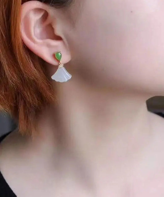 Boucles d'oreilles pendantes en forme d'éventail en argent sterling blanc incrusté de jade pour femmes LY8560