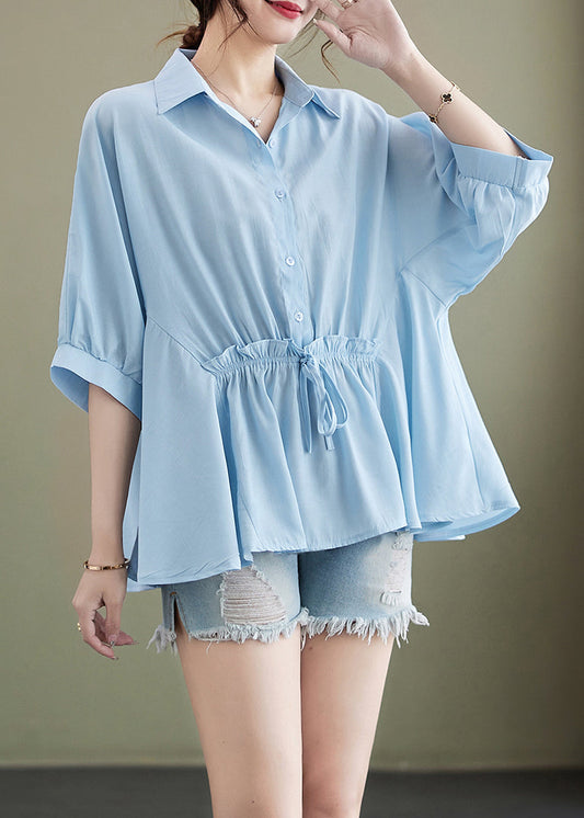 Haut chemise boutonné en mousseline de soie bleu clair grande taille été LY0415