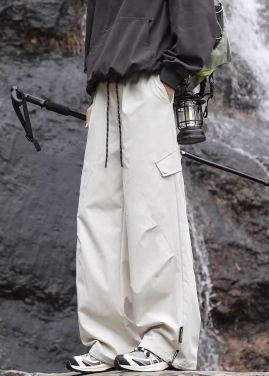 Pantalon à poches en coton pour homme, décontracté, vert, avec cordon de serrage, été
