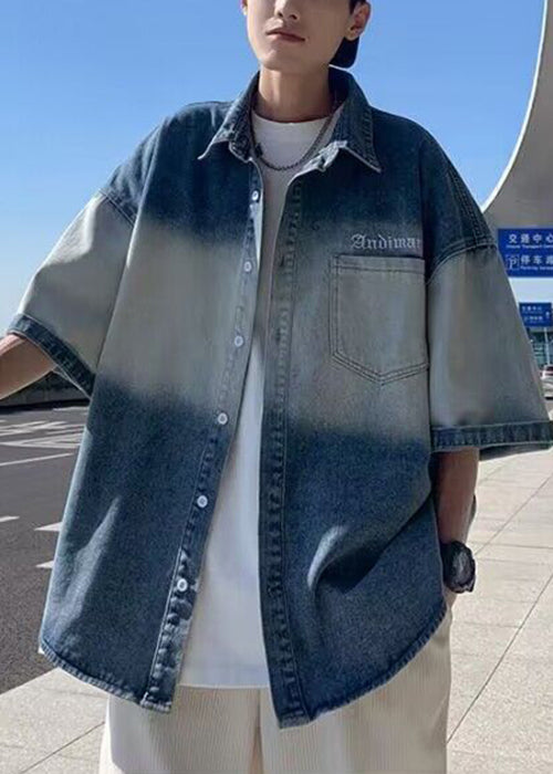 Chemises homme à poches mi-longues en coton vintage dégradé de couleurs vert