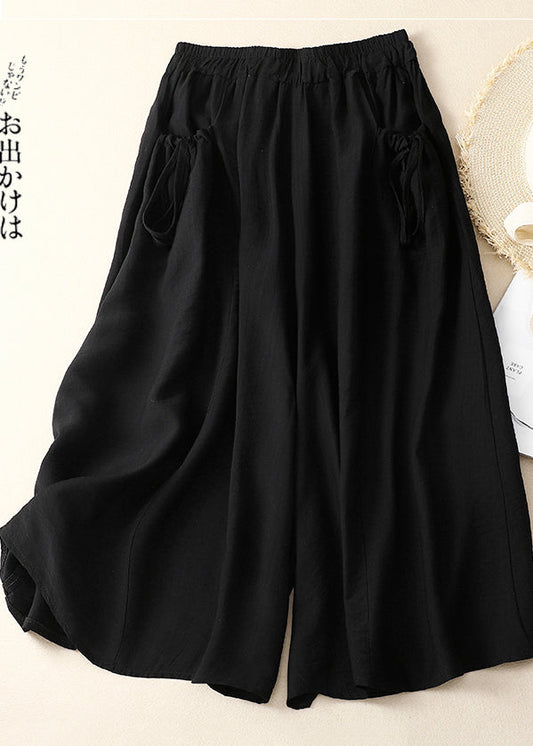 Pockets Pants Summer Linen Yellow Women Waist Elastic