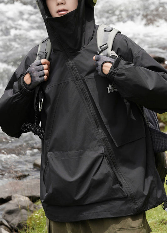 Manteau à capuche ample en coton vert pour homme, avec poches, fermeture éclair, printemps