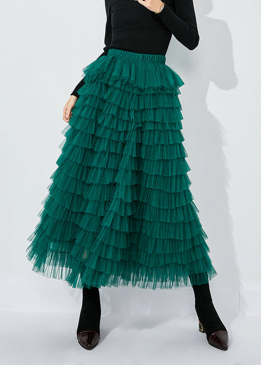 Jupes élégantes en tulle vert noir à taille haute superposées pour l'été LY0858