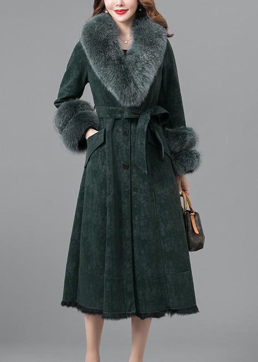 Manteaux élégants en cuir et fourrure de lapin synthétique vert noirâtre coupe ajustée hiver LY9413
