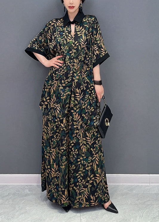 Ensemble deux pièces élégant en mousseline de soie à imprimé surdimensionné vert noir été LY1588