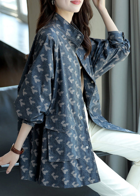 Manteau élégant à manches longues avec col montant et poches imprimées bleu LY9912