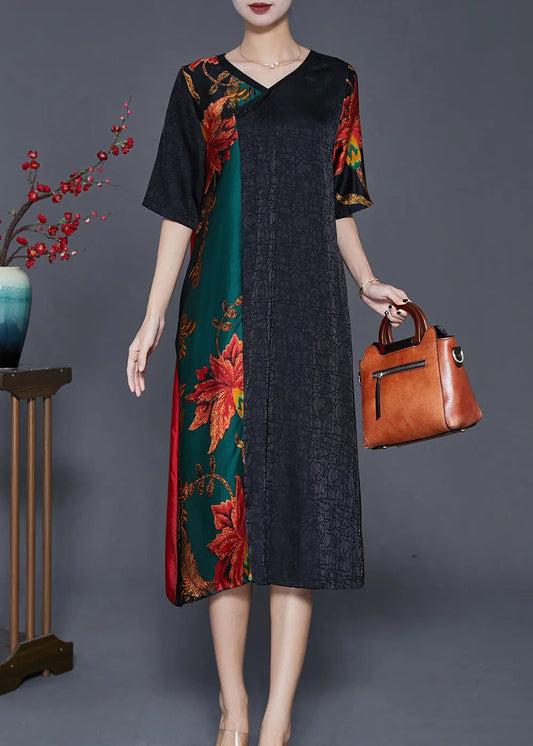Robe élégante en soie à col en V et blocs de couleurs pour l'été ML0370
