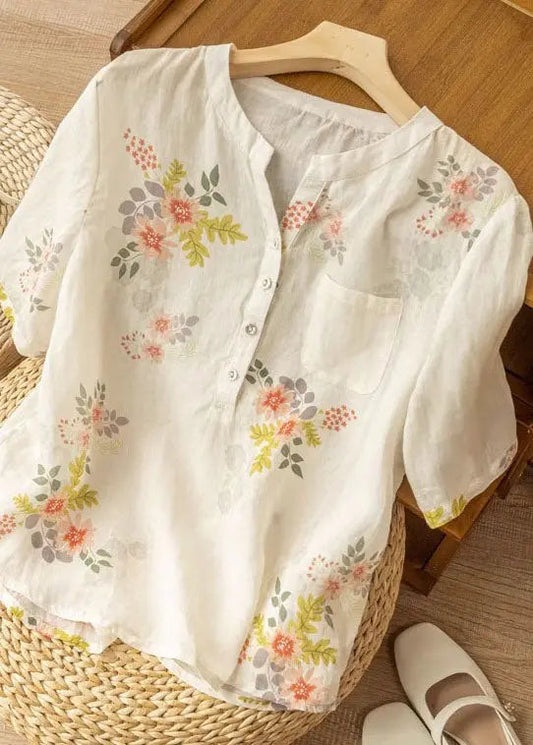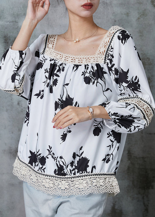 Chemises élégantes en dentelle patchwork à imprimé blanc pour l'été AL1017