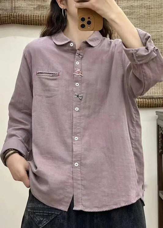Chemises en soie blanches élégantes à col Peter Pan et boutons brodés Automne EE019