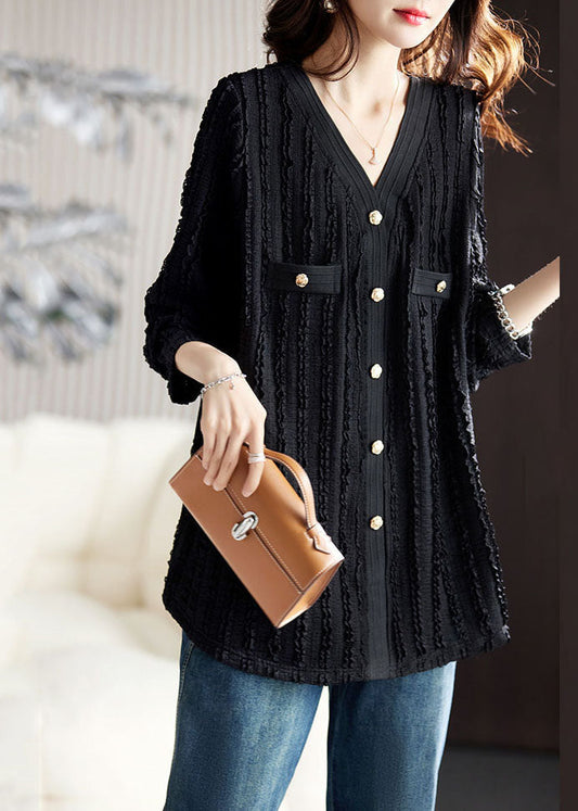 Haut élégant en dentelle patchwork à volants et col en V blanc pour l'automne ML2067