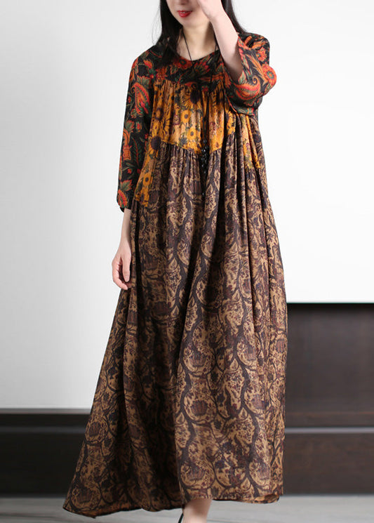 Robe longue élégante en soie froissée à imprimé jaune pour l'été LY5133
