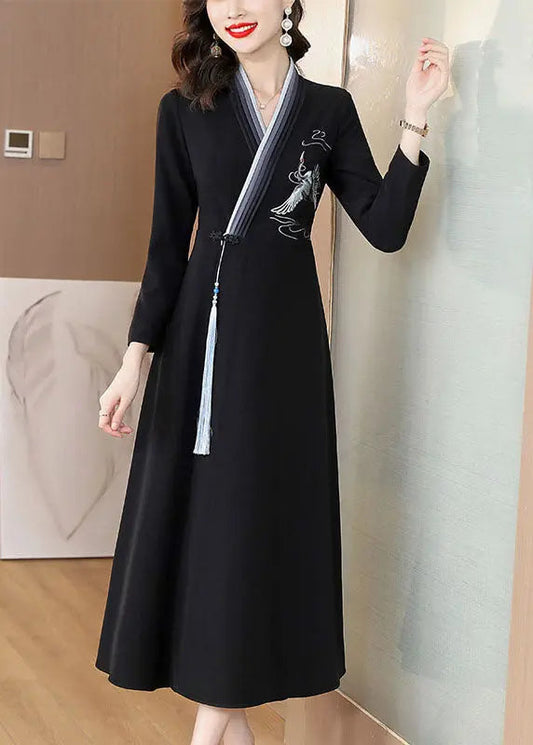 Robe boutonnée brodée à manches longues