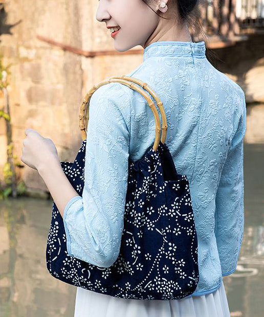 Sac à main fourre-tout en coton de style chinois à imprimé bleu marine vintage LY1749